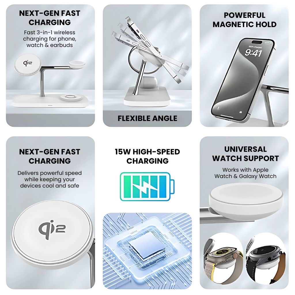 Station de charge 3-en-1 Qi2 – Recharge rapide et sécurisée pour vos appareils